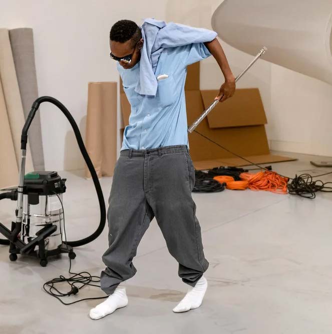 As part of Kinesthesia, Montreal-based live artist Dana Michel will perform their work MIKE throughout the Arts Centre. Michel’s practice is an eclectic mixture of improvisation, choreography, sculpture, comedy, hip-hop, cinematography, techno, poetry, psychology, dub, and social commentary. Engaging with commonplace office objects, MIKE addresses themes of work culture, self-respect, and the search for selfhood, through complex tensions that manifest in the space between our public persona and inner lives.
