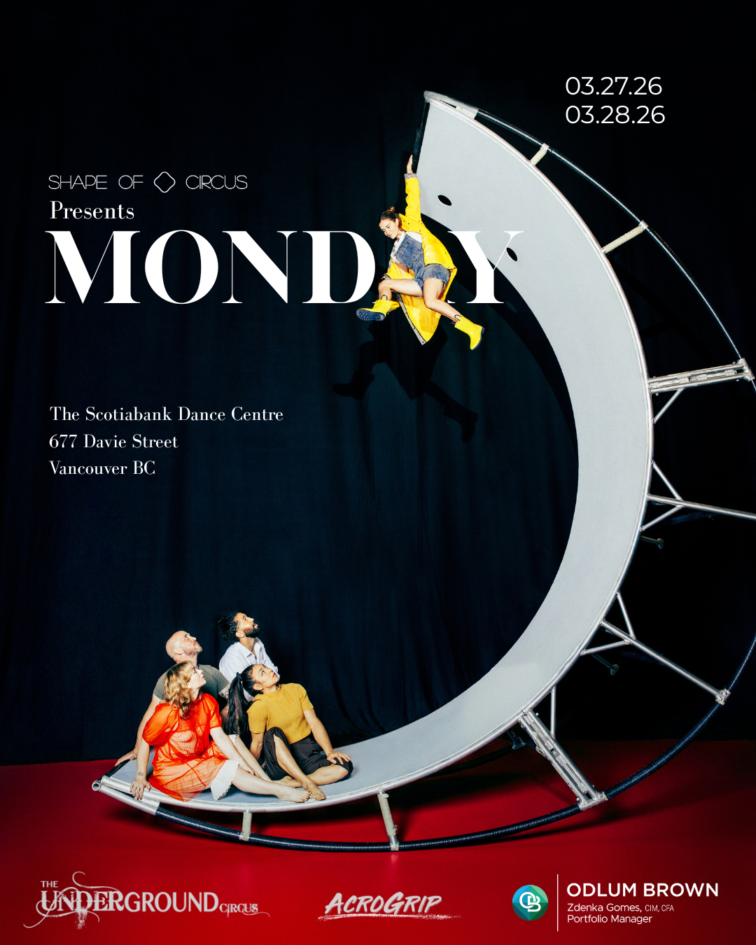 Experience this world premiere in an intimate setting at the Scotiabank Dance Centre in downtown Vancouver! “Monday” follows the lives of 6 individuals and showcases how our actions affect one another, and touches on the theme of learning to live in the present. Often these days we are consumed by technology and we forget to live in the moment. We invite you to join us in an evening of live theatre and to spend the night living in the moment, supporting live art, and live artists.